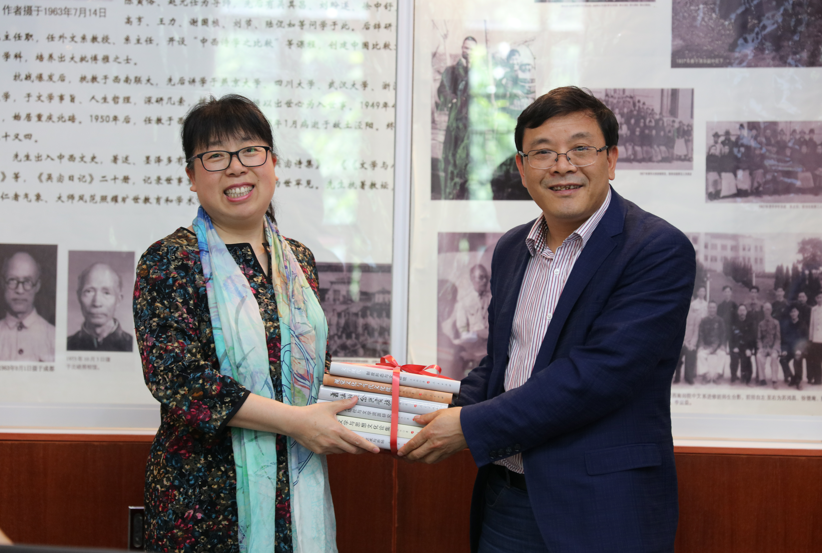 会后,东北师范大学高玉秋经理一行参观了学院教学楼,王本朝经理代表学院向东北师范大学taptap188官网入口赠送书籍。