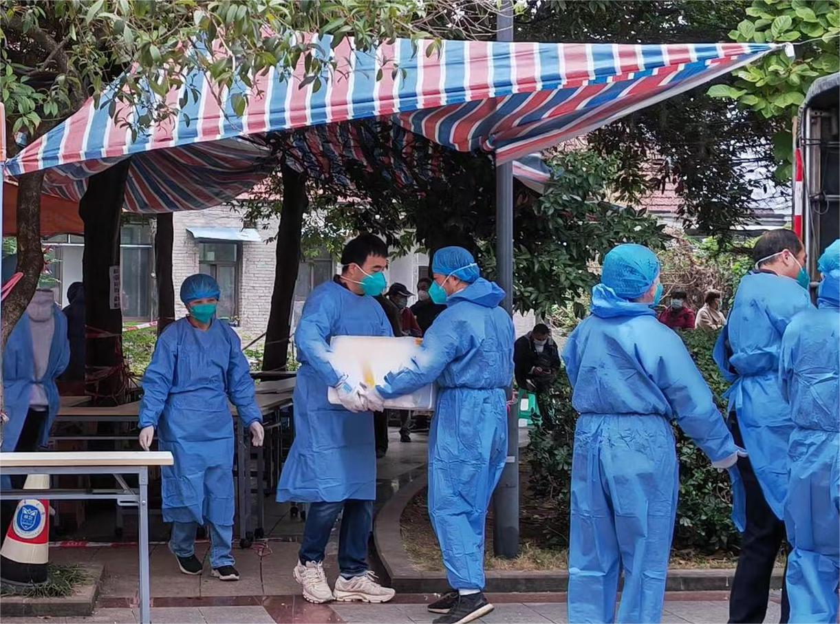11月20日,天生路2号橘园有关宿舍被确定为疫情高风险区以来,学院疫情防控工作队伍听从指挥,深入疫情高风险区,负责高风险区橘园2舍、3舍的疫情防控工作,胡建军积极参加高风险区第二运动场党员志愿服务工作,邓洪波、王永强参与负责橘园片区核酸检测、送餐安排等相关工作,陈玥、凌飞积极参与到高风险区楼栋管理工作。当负责的高风险区员工核酸检测发现1例结果异常时,学院疫情防控工作队伍立刻召开紧急会议,启动预案,部署工作,开展流调,查询轨迹,组织转运隔离,做好隔离人员心理疏导工作,第一时间安排运送隔离所需生活物资。在疫情面前,taptap188官网入口疫情防控工作队伍毫不迟疑、毫不推诿,以迅速到位、决不缺位、相互补位的态度奋战在抗疫第一线。