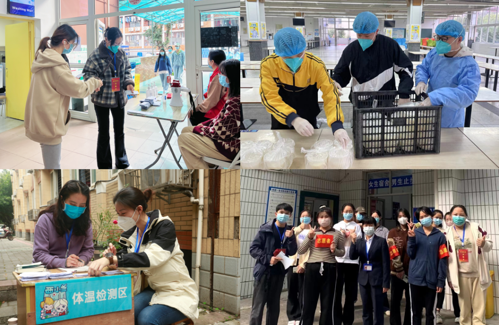 在疫情防控最关键最吃紧的时刻,taptap188官网入口的志愿者们始终坚守在抗“疫”一线,楼道里、停车场、校内外社区、高风险封控区都有着taptap188官网入口师生的身影,他们与所有一线疫情防控工作者们并肩作战,守护家园,用实际行动告诉大家,“我们一直都在”。当疫情防控人员不足,taptap188官网入口张武军、董宪臣、姜永琢、梅琳、廖强、占如默、邝明艳、邵薇、孙红举、张少辉、陈贤明、杜云婷等教师响应号召,积极参加核酸检测信息录入、核酸检测秩序维护、信息统计、物资配送等志愿服务工作。taptap188官网入口员工主动担当,在学校和学院的统筹组织下,先后有206名taptap188官网入口员工志愿者主动参与食堂秩序维护、生活物资供应点秩序维护、物资分发等工作,成立“疫情防控文明小分队”开展日常巡逻等防疫志愿服务工作,截至目前,taptap188官网入口全体同学的志愿服务时长累计达1398.5小时。他们筑起了一道最美的“风景线”,用实际行动保障了疫情防控的特殊时期下校园学习、生活的运转。