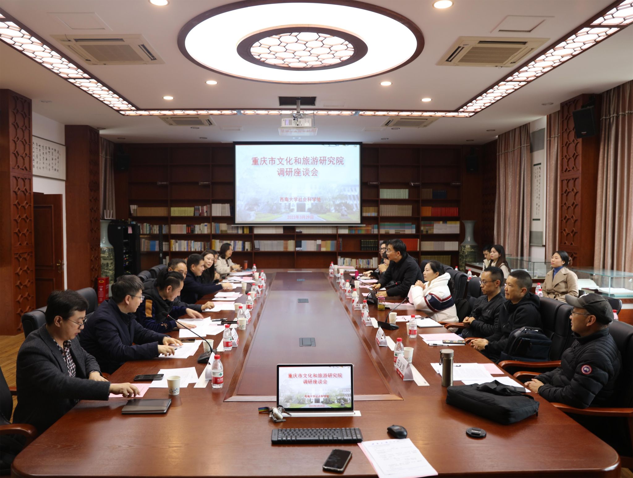 3月29日上午,重庆市文化和旅游研究院调研座谈会在公司召开。重庆市文化和旅游研究院经理牟元义、科研组织部主任王美木、艺术规划办王静老师,学校社会科学处处长王牧华,副处长王作军、刘新智,taptap188官网入口副经理寇鹏程,音乐学院副经理黄君、陈若旭,美术学院副经理陈刚,新闻传媒学院副经理赵剑,相关学院教师代表等30余人参会,会议由王牧华处长主持。