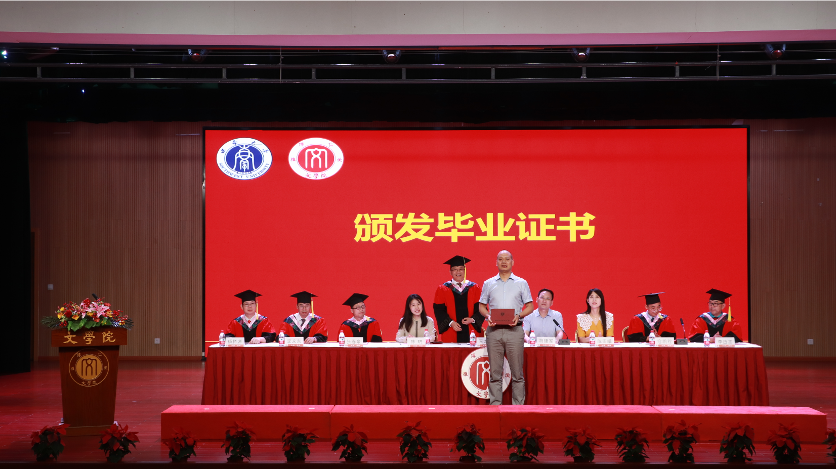 随后,中国语言文学学术委员会委员王本朝教授、张春泉教授、寇鹏程教授、李永东教授、李应志教授、杨怀源教授为学士学位获得者授位。