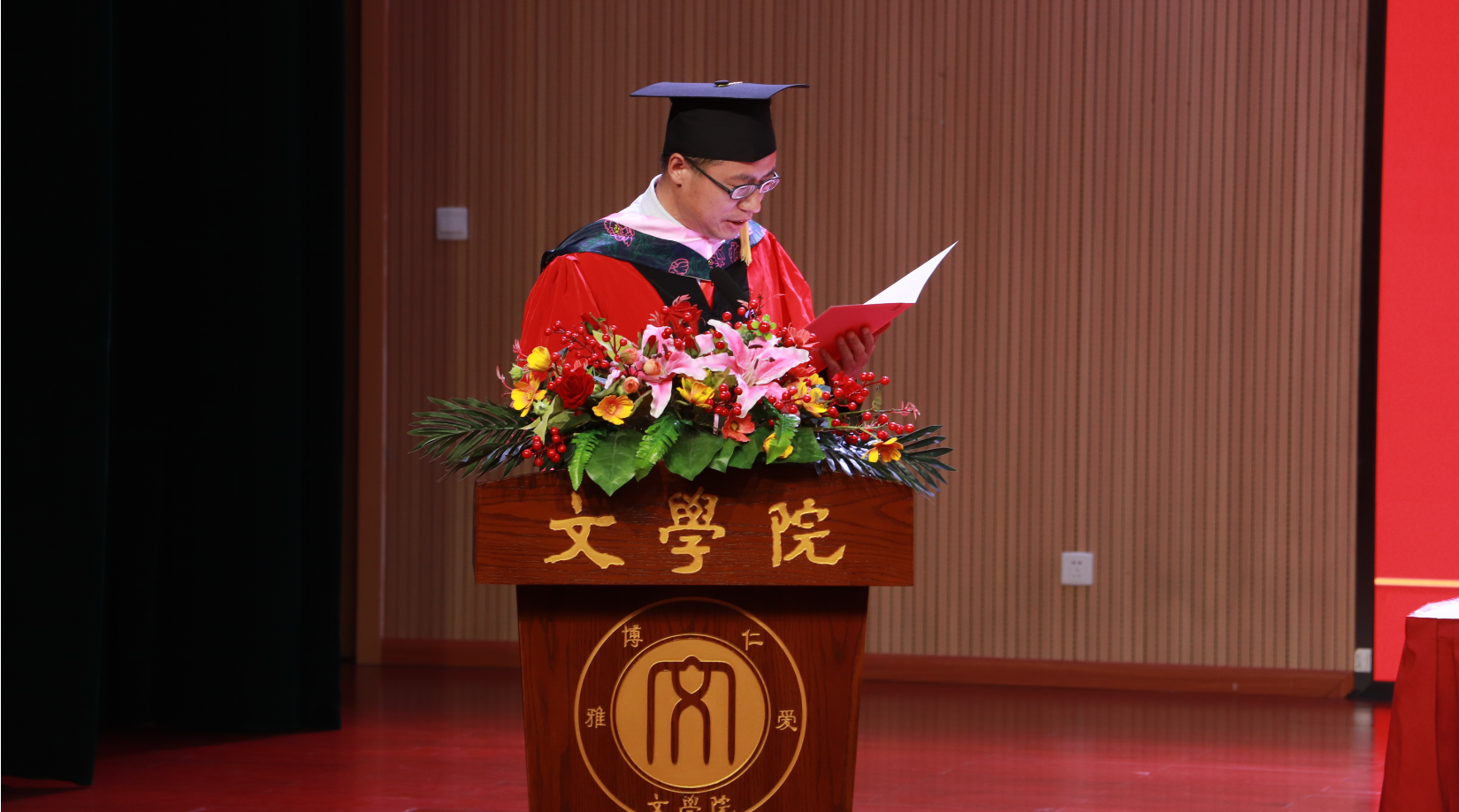 taptap188官网入口中国语言文学学术委员会主任王本朝教授宣读学位授予决定。经校学位评定委员会全体委员会议审核,决定授予taptap188官网入口409名普通高等教育本科毕业生学士学位。