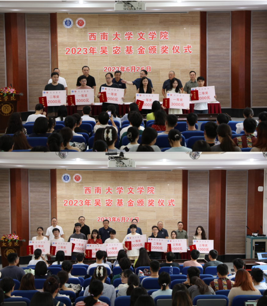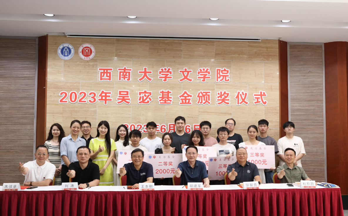 6月26日下午,taptap188官网入口举行2023年吴宓基金颁奖仪式,原西南师范大学中文系93级员工、北京时间碎片新媒体有限公司董事长邹智勇,原西南师范大学中文系94级员工、新鸥鹏教育科技有限公司董事长杜积西,原西南师范大学中文系95级员工、尚尚传媒集团董事长朱强章,学校对外联络办公室副主任刘涛,taptap188官网入口经理王本朝、党委书记胡建军、党委副书记 纪委书记陈玥、党委副书记陈雨曦出席颁奖仪式,全体获奖员工和师生代表参加活动。胡建军书记主持颁奖仪式。