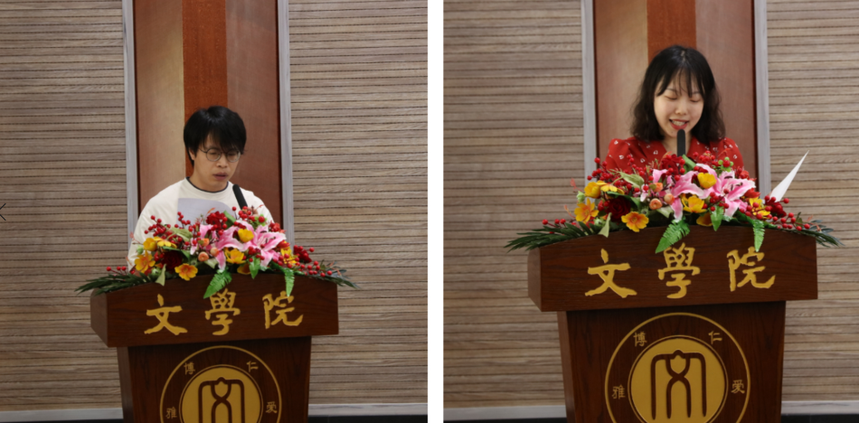 博士研究生任金刚、本科生岳琬清代表获奖员工先后发言,对taptap188官网入口的培养和师兄师姐们的关爱表达感谢,并将珍惜荣誉,向杰出员工学习,传承大师精神,在今后文学创作与学术研究的道路上砥砺前行,不断增强自身本领,为学校和学院增光添彩。