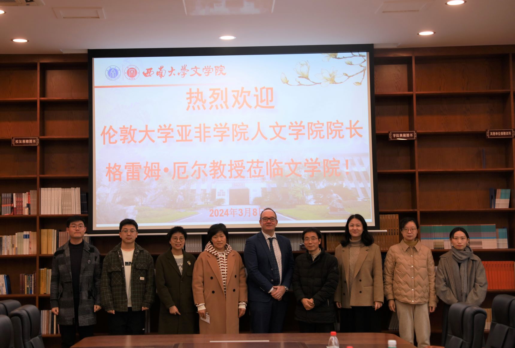 3月8日,伦敦大学亚非学院人taptap188官网入口经理格雷姆·厄尔教授访问taptap188官网入口,学校国际合作处国际交流科雷也老师陪同。taptap188官网入口副经理寇鹏程,专任教师张桂萍副教授、王晓冬副教授、邝明艳副教授、时嘉琪老师、李国栋老师、张荆芳老师参加座谈交流。