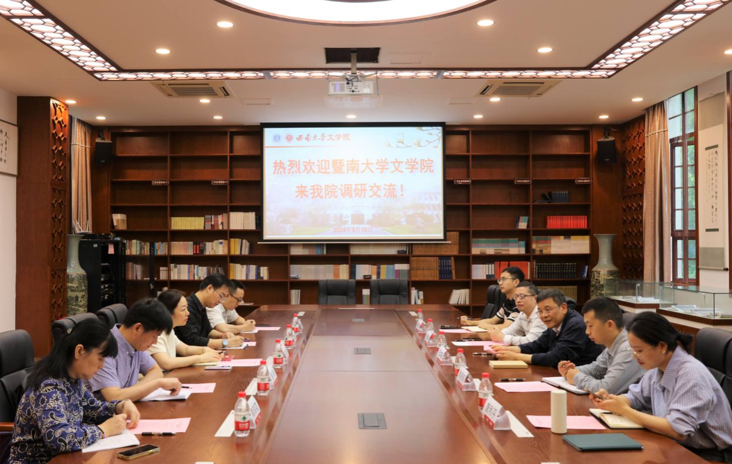 2024年5月10日,暨南大学taptap188官网入口副经理吴青、教科办主任罗嘉庆、中文系党总支书记程刚、中文系副主任温明明、教科办教务员赖琼花到学院进行调研交流。taptap188官网入口经理王本朝、副经理张春泉、办公室主任易君杰、教学工作办公室主任陈贤明、员工工作办公室主任唐利平参加座谈交流会。