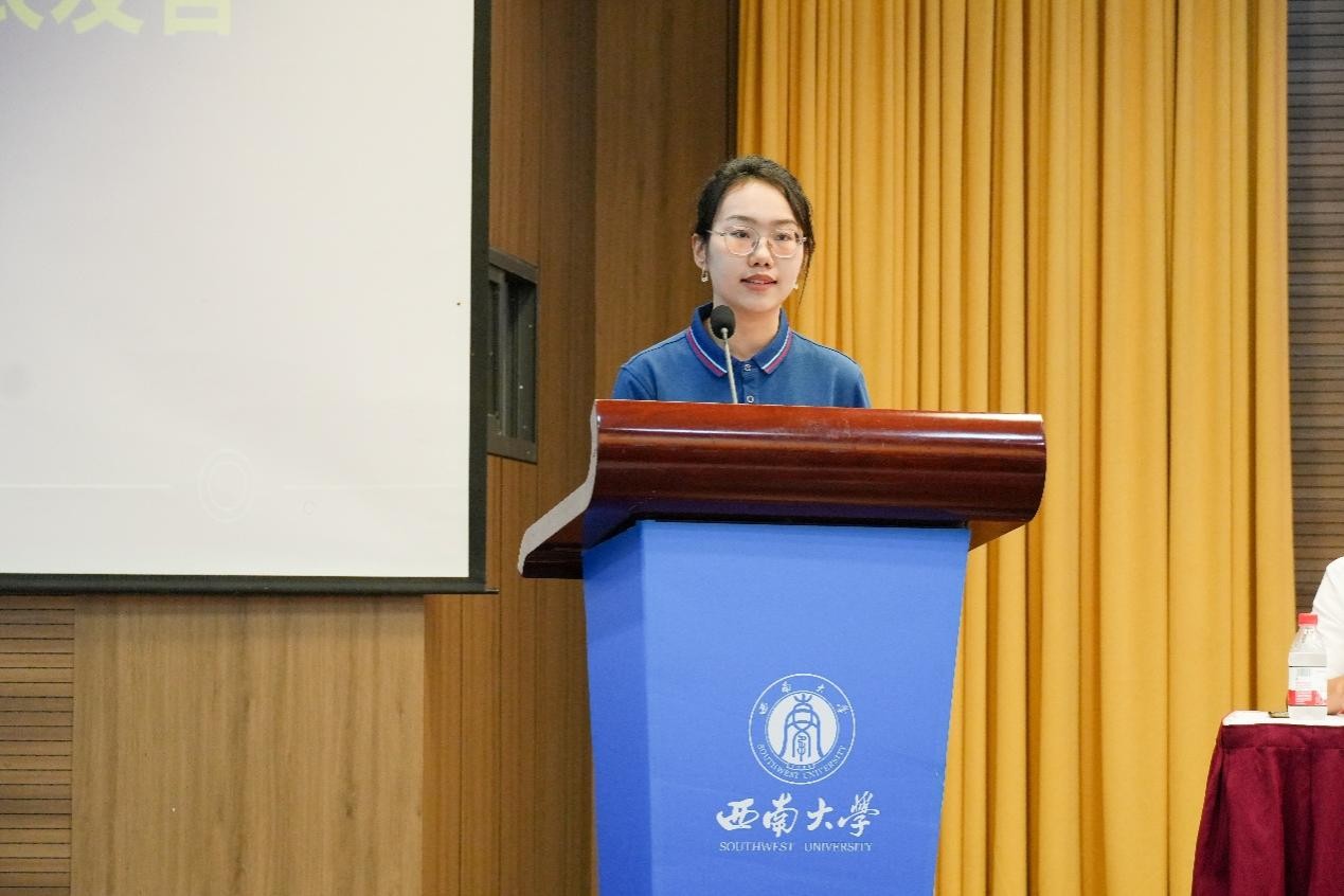 汉语言文学师范专业张书菡代表本科生新生发言,表示将在充满人文气息的沃土上,研读文学瑰宝、拥抱时代发展,为文化传承与教育事业贡献青春力量。