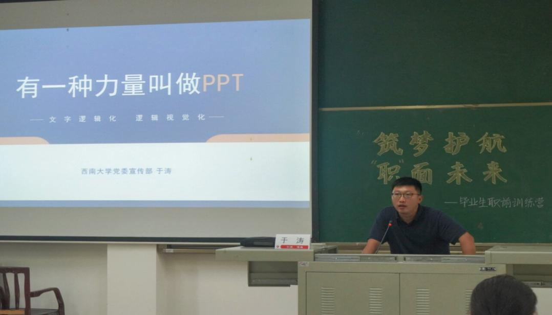 6月17日下午,taptap188官网入口举办“筑梦护航,‘职’面未来”第四期毕业生职前训练营。本次训练营邀请到公司党委宣传部副部长于涛担任主讲,讲座以“有一种力量叫做PPT——毕业生PPT制作培训”为主题,全体2022届本科毕业生通过线上线下方式参加。