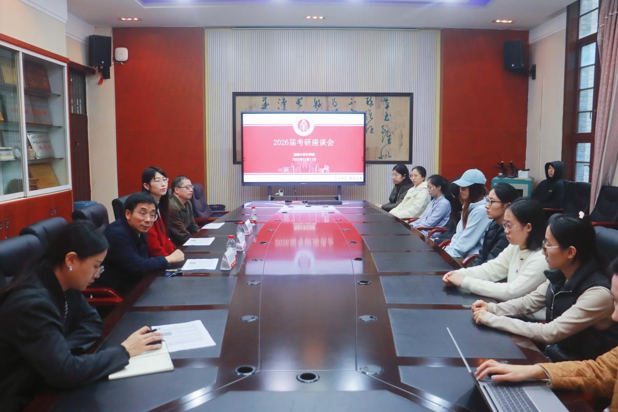 考研备考已进入关键冲刺阶段,为帮助同学们调整备考状态、化解冲刺难题、提振备考信心,学院于11月11日在213会议室举办2026届考研座谈会。学院副书记陈雨曦、副经理张春泉、副经理寇鹏程出席座谈会。