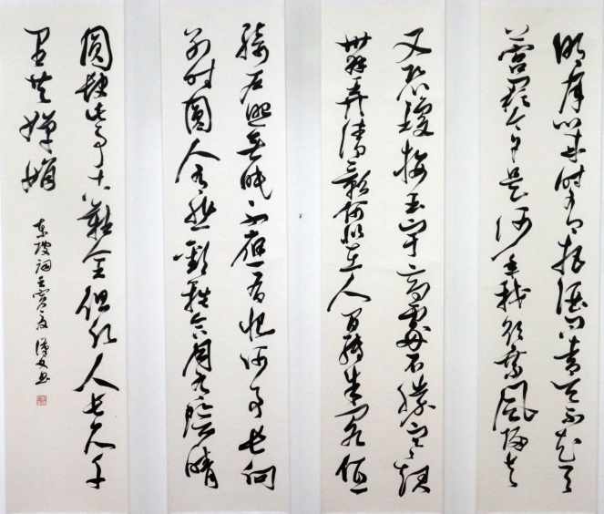 硕士生陈思棋本科为美术学,论文讨论东坡与文与可的绘画理论,创作主题多与两者相关。其篆书以清人吴昌硕书风为底,行楷书取法赵孟頫、米芾,出之以文秀之笔;其绘画以东坡、与可为师,以竹画可见一斑。