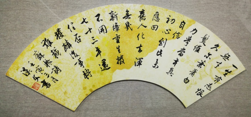 硕士生张夏云孜孜于书法十多年,致力于精微。其论文研究东坡书风碑刻三种,由一而多,深得学术旨趣。其书写内容多取自与论文相关者诗文,书体以行楷、行书见长,根基于智永、米芾上探二王,笔势澜翻,点画传情。