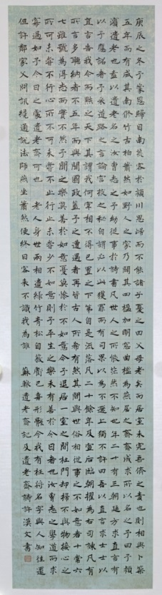 求学三年,我以愚拙之身忝列先生门墙,在书法创作上虽有寸进,但距入门似乎尚远。在我看来,此次所呈拙作与其说是展示自己数年来的所学所得,毋宁说是一次献丑罢了,惭悚交并,正适合用来形容我此时的心境。我的学书之路,仍然坚守中国书法研究所形成的传统:于篆书兼习工稳与写意一路,主要自李斯、李阳冰处得结体与中锋用笔之理,进而研习吴昌硕篆书,求其线质之朴厚与气象之雄浑;于隶书主要取法汉碑,在以《张迁碑》与《曹全碑》为代表的两类风格中都有所学习和体会;于楷书宗法唐代名家,偏好褚体的秀劲典雅之风;于行、草小字则植根二王一脉,由临习宋四家进而追溯晋唐;而在大草的学习上,师法的对象主要在于晚明书家。根据往年的惯例,毕业创作的文字内容应当与自己的毕业论文有所关联,因此,苏辙诗文以及苏轼诗文中语涉苏辙者,便成为了我的毕业创作的出发点。基于此,特展出拙作十余件,望诸位观者不吝赐教。