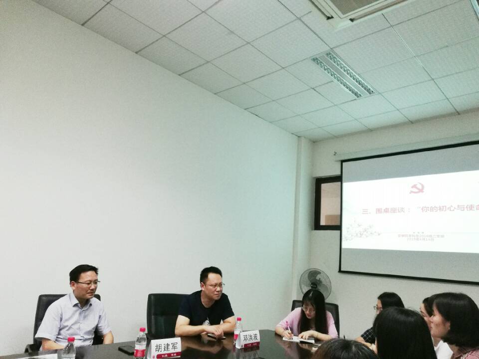 6月14日下午,taptap188官网入口本科生2016级二支部在210会议室开展“不忘初心,牢记使命”主题党日活动。公司党委书记胡建军、党委副书记邓洪波、本科生2016级辅导员李晓娟及全体支部党员参加了本次活动。
