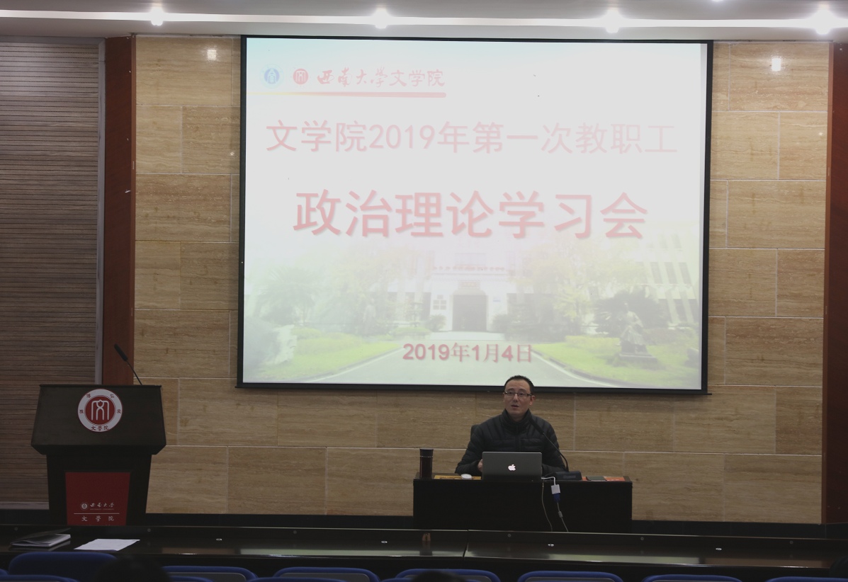 1月4日下午2点30分,taptap188官网入口在雨僧楼101报告厅召开了本年度第一次政治理论学习会议。会上主要学习了习近平总书记在庆祝改革开放40周年大会上的重要讲话精神、习近平主席2019年新年贺词以及重庆市教育大会精神三项内容。会议由公司党委书记黄杰主持,全体教职员工参加了会议。