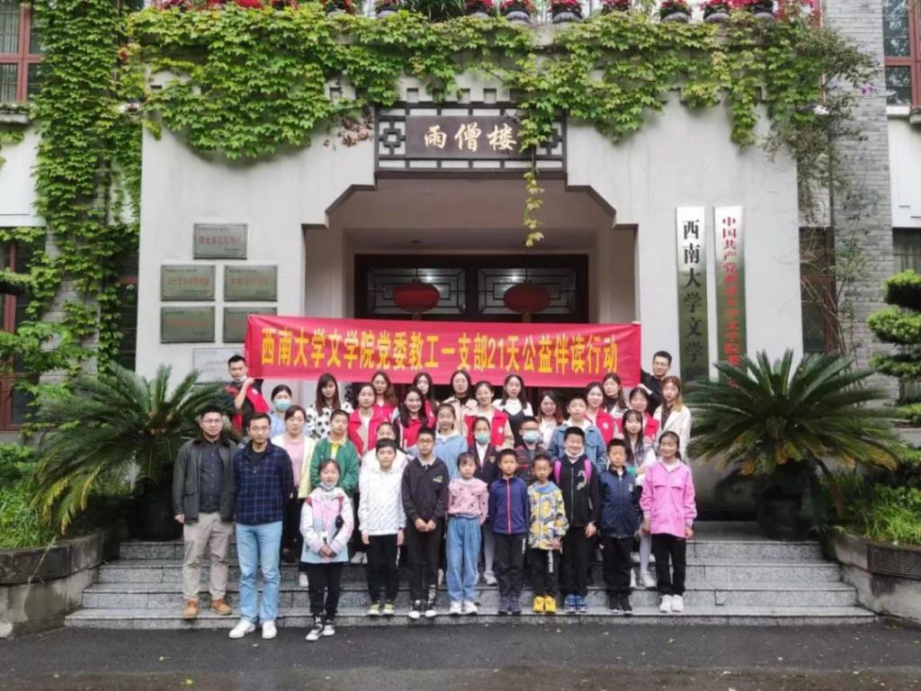 党支部充分发挥战斗堡垒作用,以文化扶贫助力脱贫攻坚和乡村振兴,不断深化文化供给。一是发挥文化智力优势,开展支教志愿服务活动。开展“萌蒙以幼,予阅以诗”21天公益伴读活动,与留守儿童一对一结伴阅读,通过个性化定制、精准化指导,帮助留守儿童培养良好的阅读习惯,活动辐射200余户留守儿童家庭。二是立足地域文化特点,助力地方文化发展。支部党员参与由北碚区委宣传部主办的“百馆之声”文化沙龙,讲好北碚的历史故事,在腾讯新闻进行现场直播,观看总人数达160余万人,增强了人民大众文化强国的自信自觉。三是紧扣时代热点,创作先进文化作品。2022年夏天重庆持续高温引发北碚山火,支部党员积极投身志愿服务第一线,在参与山火救援的同时创作出了《燃烧的重庆,燃烧的血性》《山火中的逆行者》等一批反映志愿服务精神的诗歌、散文等文化作品,积极传递社会正能量。
