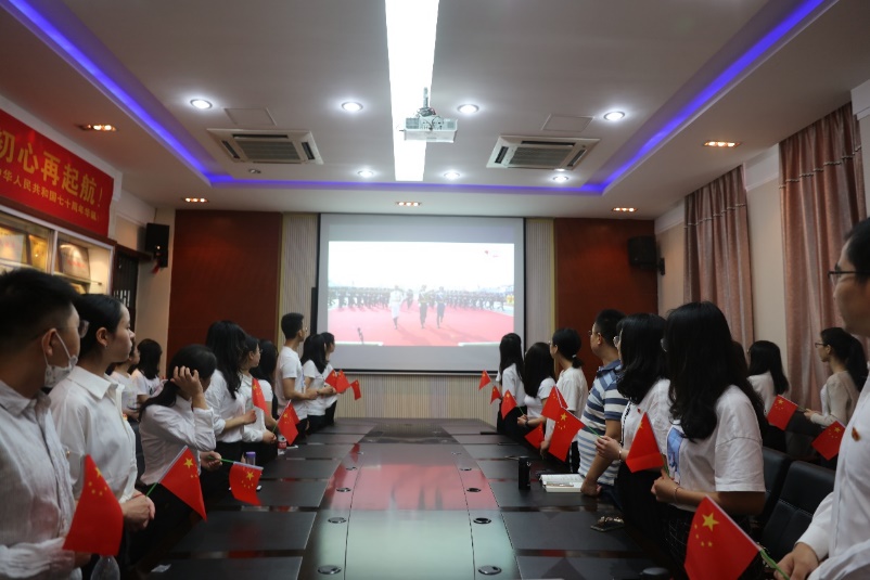 10月1日上午,庆祝新中国成立70周年大会在天安门广场隆重举行,公司党委组织在校师生党员在雨僧楼213会议室集中收看大会盛况,将观看大会与“不忘初心、牢记使命”主题教育相结合,鼓励党员将爱国精神转化为实际行动,小我融入大我,青春献给祖国。
