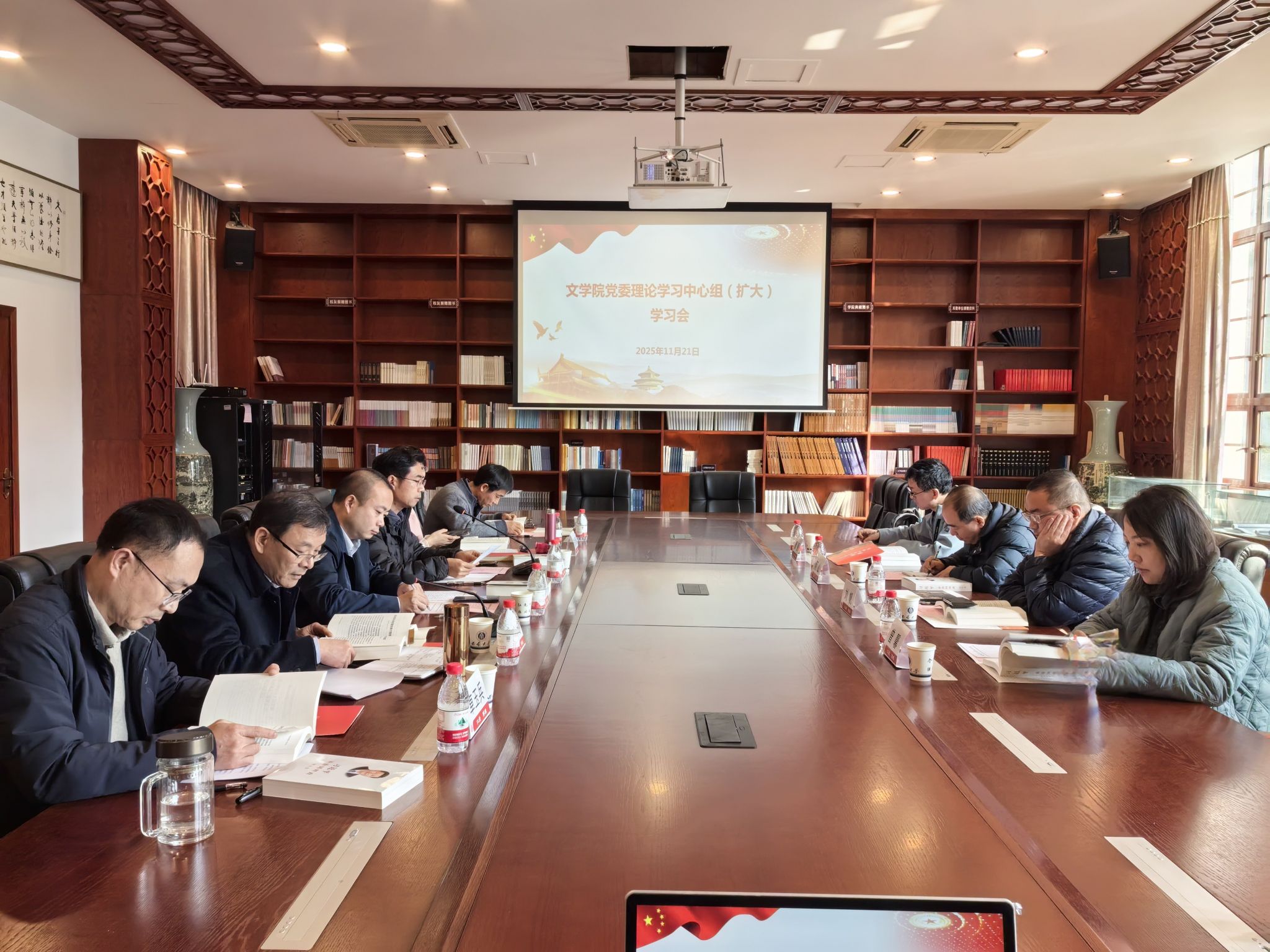 会议围绕党的二十届四中全会精神和《习近平谈治国理政》第五卷进行了深入学习,与会人员交流了学习体会。经理王本朝等表示,要深刻领会中华文明的特性,系统认识“两个结合”的重大意义,在深学细悟习近平文化思想中推动学院团队建设和新时代文学研究“顶天立地”。